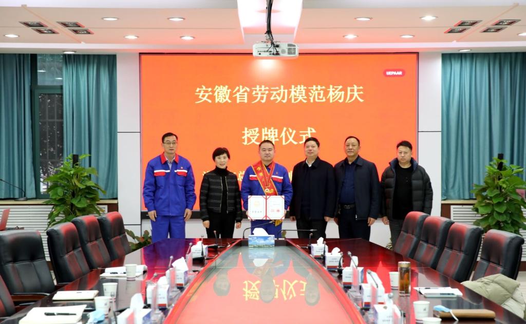 淮北市總工會為安徽省勞動模范楊慶授牌