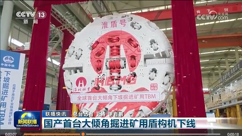 據5月9日晚間央視新聞聯播報道,國產首臺大傾角下坡掘進礦用盾構機“中鐵1285號”今天(5月9日)正式下線,將用于淮北礦業集團煤礦建設。