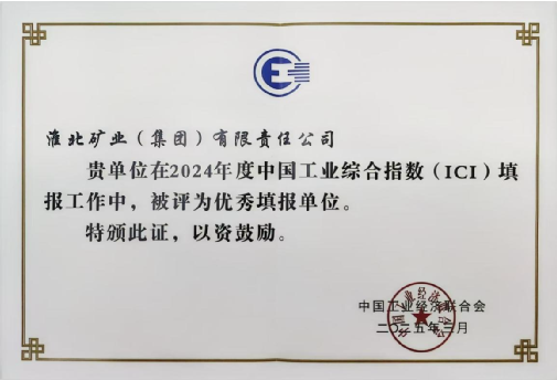 近日,從中國工業經濟聯合會傳來喜訊,淮北礦業集團被評為“2024年度中國工業綜合指數(ICI)優秀填報單位”,這也是集團公司連續第9年被評為優秀填報單位。