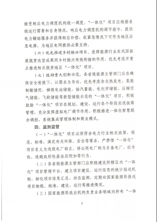 “一體化”項(xiàng)目接受相應(yīng)電力調(diào)度機(jī)構(gòu)統(tǒng)一調(diào)度。“一體化”項(xiàng)目應(yīng)根據(jù)系統(tǒng)運(yùn)行需要和自身情況,響應(yīng)電力調(diào)度機(jī)構(gòu)調(diào)節(jié)指令,提供電力輔助服務(wù)并獲得相應(yīng)補(bǔ)償,在緊急情況下可作為地區(qū)應(yīng)急電源,為地區(qū)電網(wǎng)提供必要支持。原文見(jiàn)下: